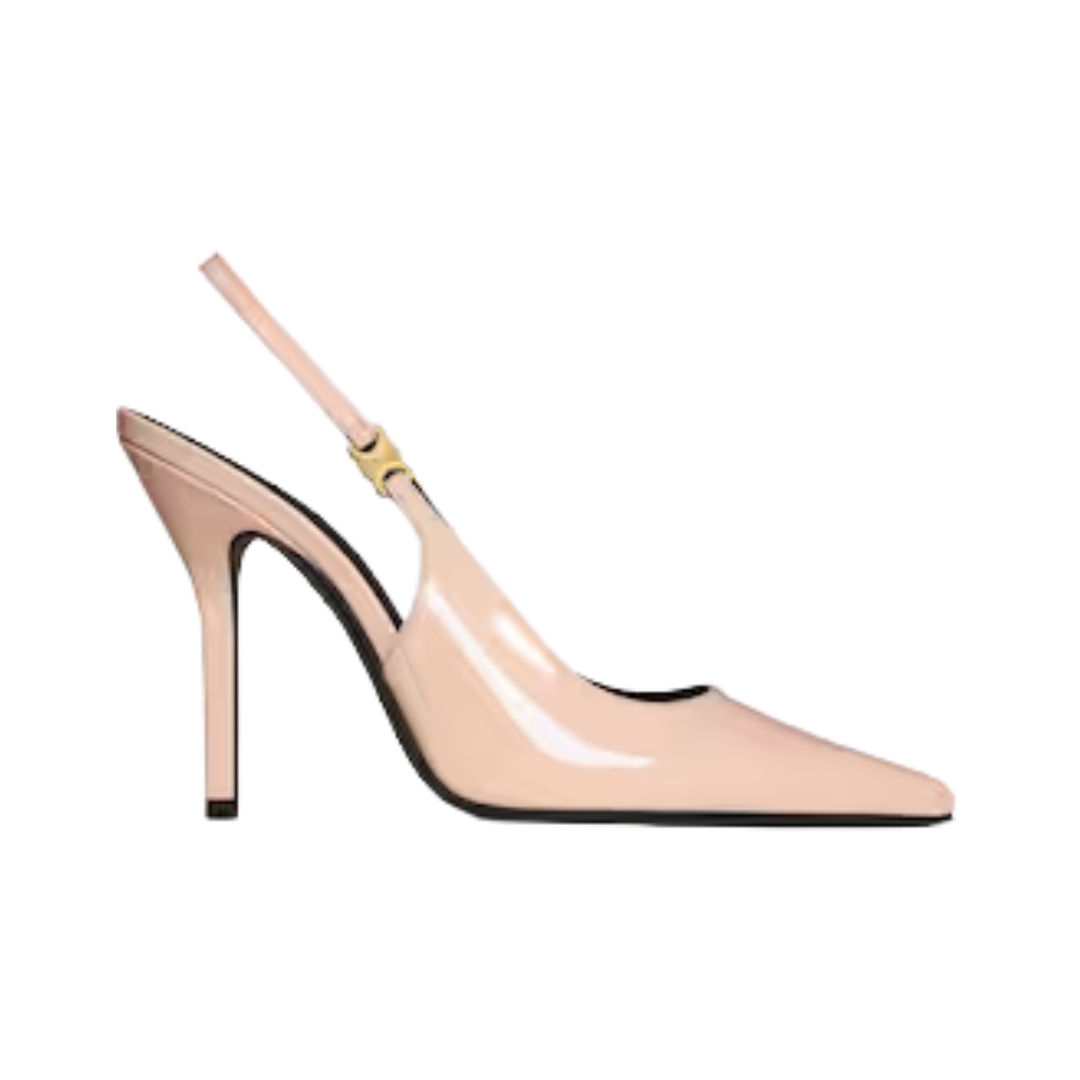 Dettagli:● Materiale: Pelle di vitello verniciata● Colore: Oro metallizzato● Chiusura: Cinturino alla caviglia con fibbia● Logo: Dettaglio Triomphe sul cinturino●