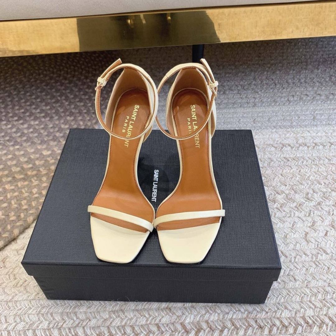 Sandali con tacco Saint Laurent Opyum beige 8,5 cm