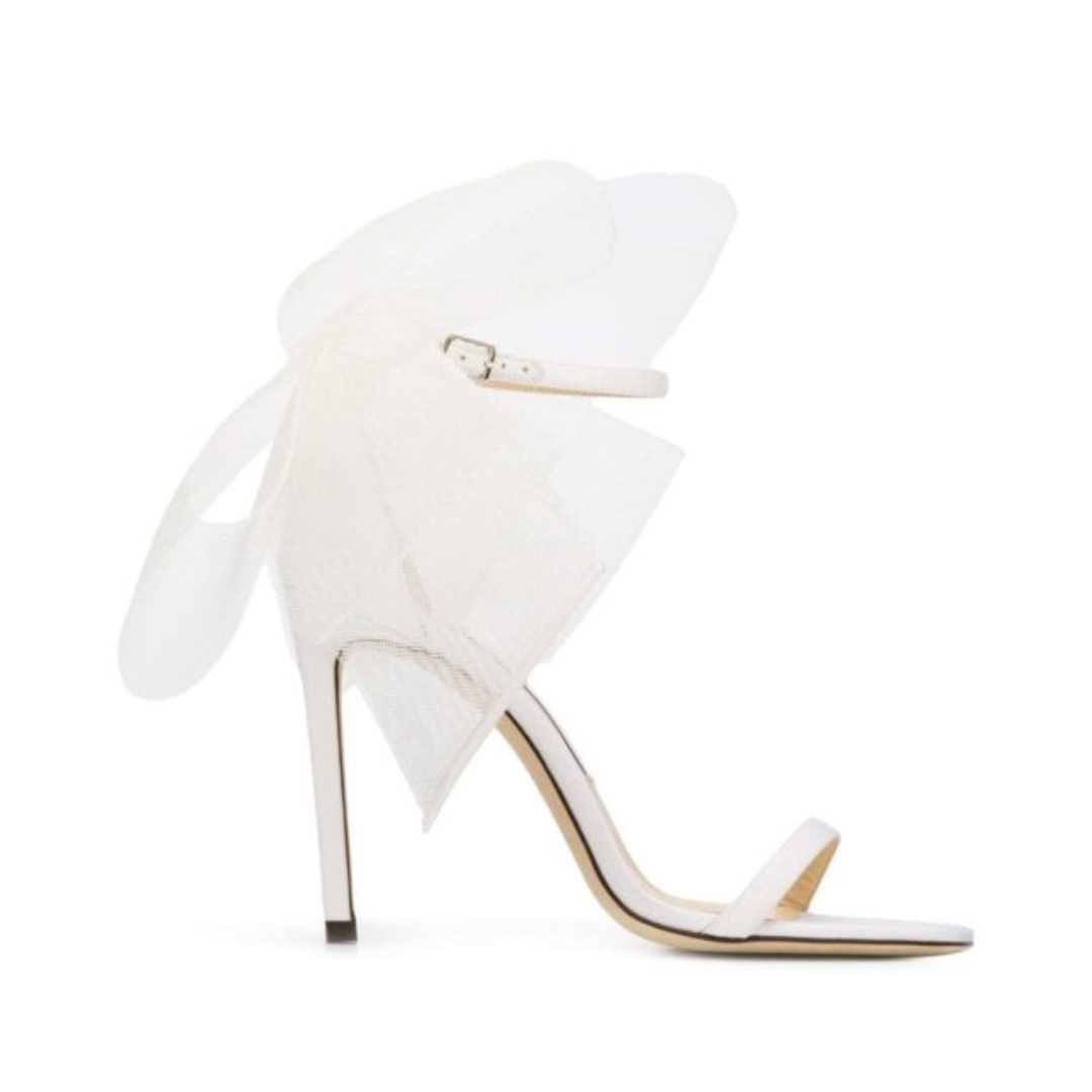 Sandali Jimmy Choo Aveline in raso bianco con fiocco e tacco 10 cm
