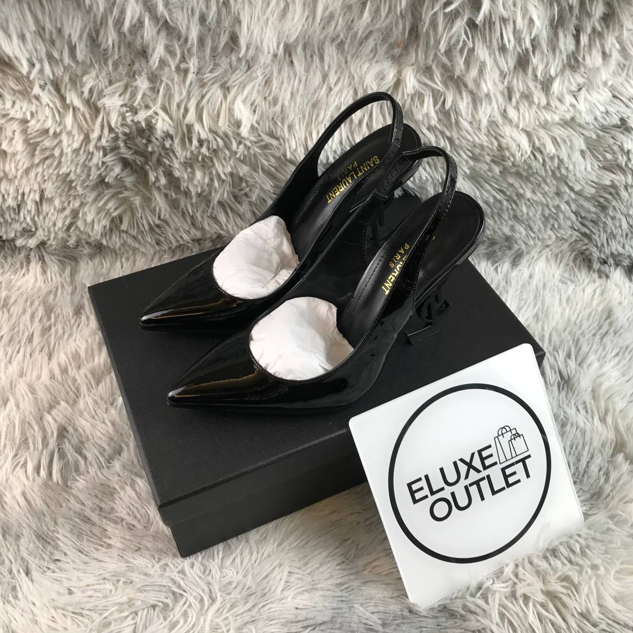 Dettagli:● Materiale: Vernice● Colore: Nero● Chiusura: Slingback regolabile● Logo: Tacco scultura YSL nero● Suola: Cuoio● Interno: Pelle● Parti metalliche: Fibbia
