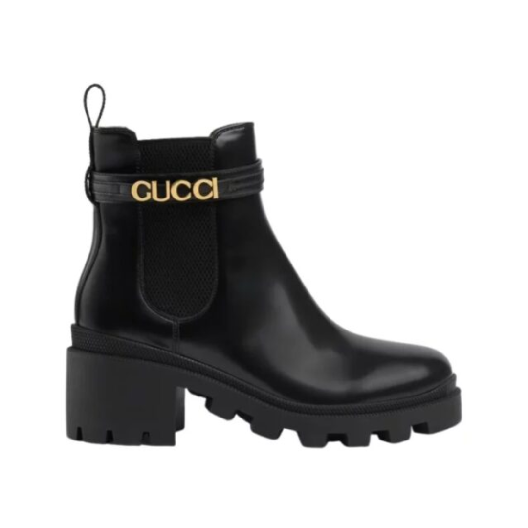Dettagli:● Materiale: Pelle liscia● Colore: Nero● Chiusura: Slip-on con elastico laterale● Logo: Fascia con scritta GUCCI dorata sulla caviglia● Suola: