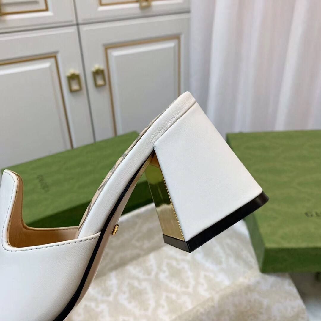 Dettagli:● Materiale: pelle liscia● Colore: bianco panna● Chiusura: slip-on● Logo: Horsebit dorato● Suola: in cuoio● Tacco: largo 5 cm● Interno: