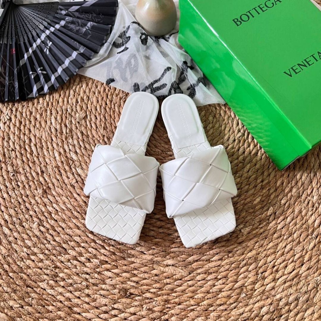 Sandali Bottega Veneta Lido in pelle bianca intrecciata