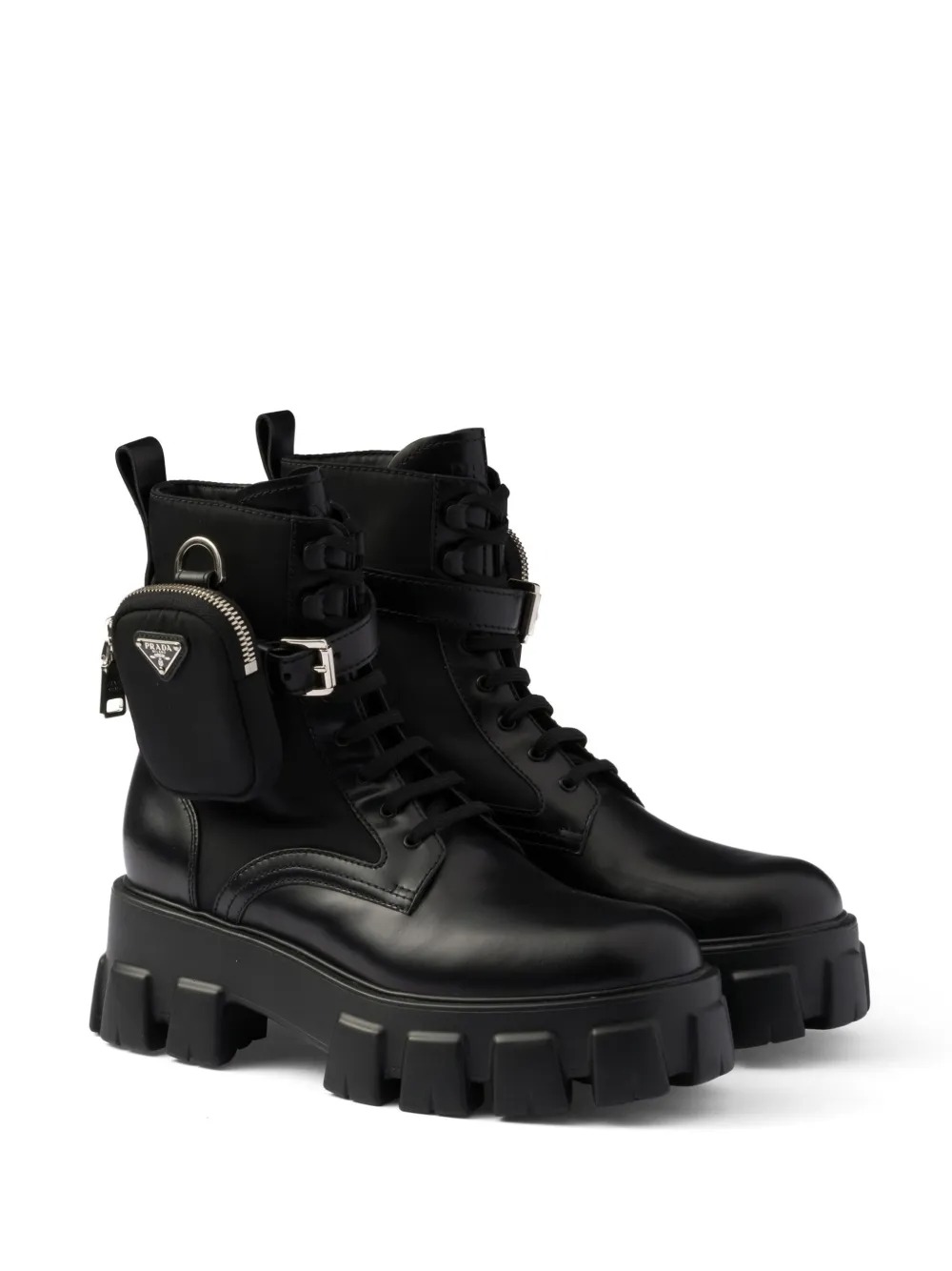 Stivaletti Prada Monolith neri con taschina rimovibile