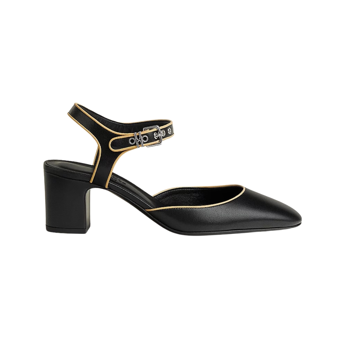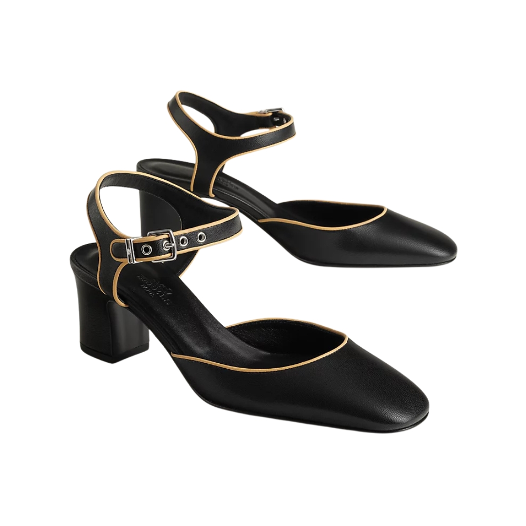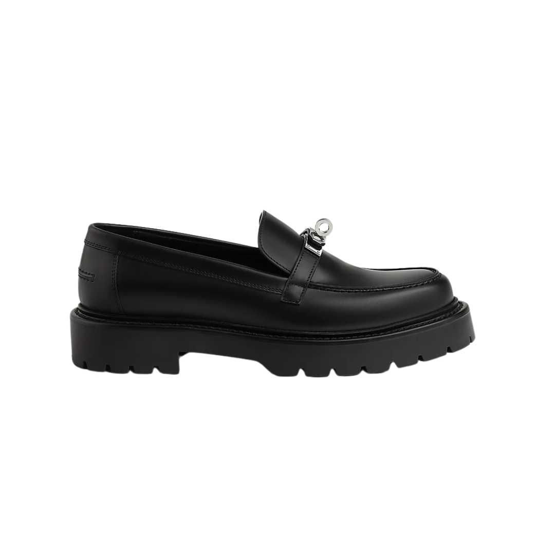 Mocassini Hermès Icône in pelle nera con tacco 3 cm