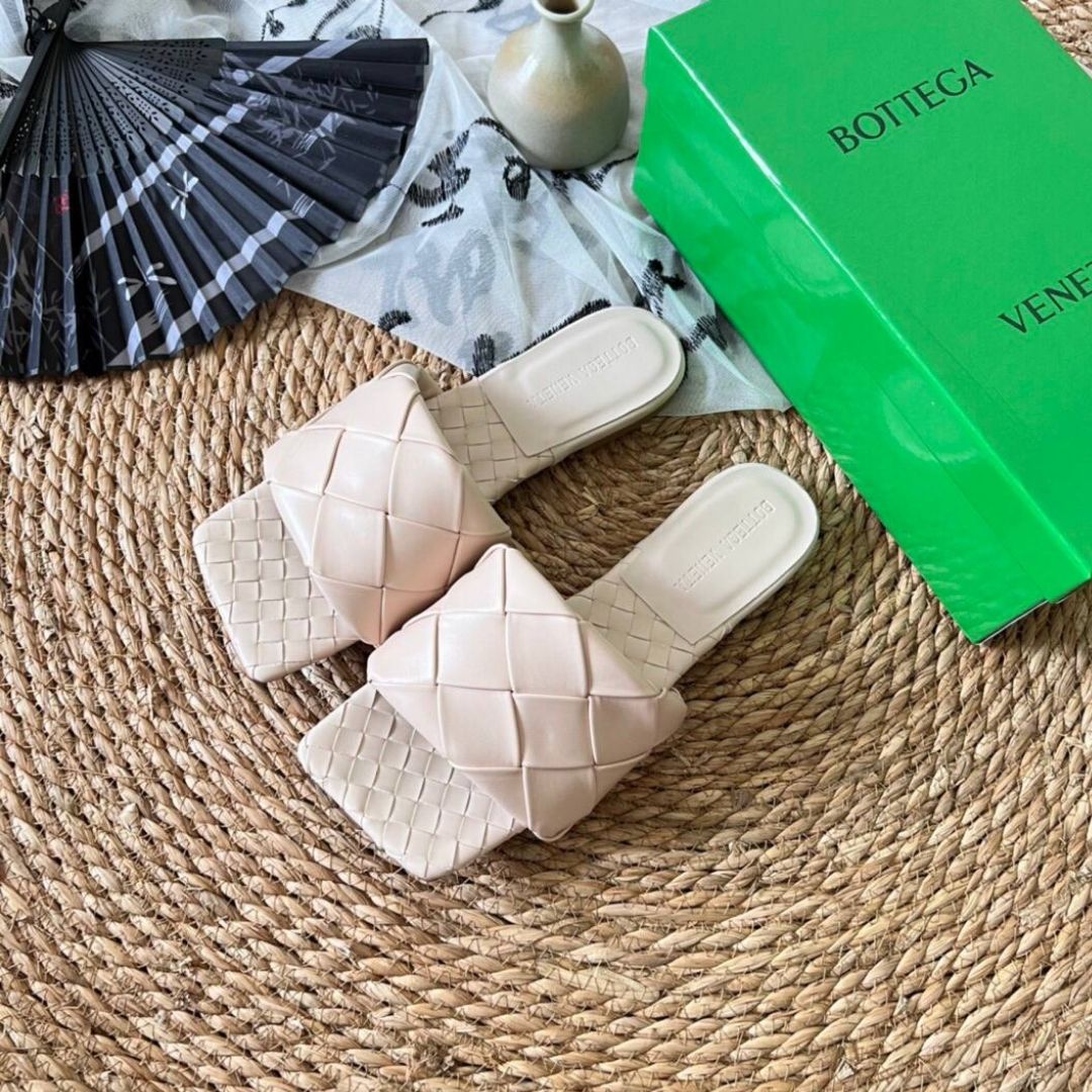 Dettagli:● Materiale: pelle di vitello intrecciata● Colore: beige● Chiusura: slip-on● Logo: impresso sulla soletta● Suola: cuoio