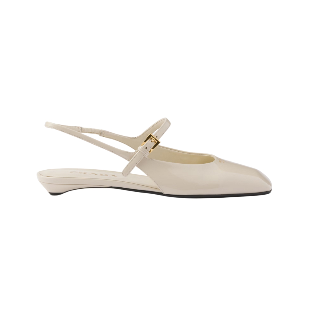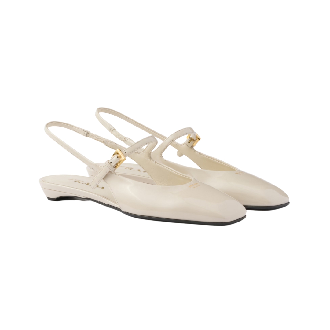 Ballerine slingback Prada in vernice avorio tacco 1,5 cm