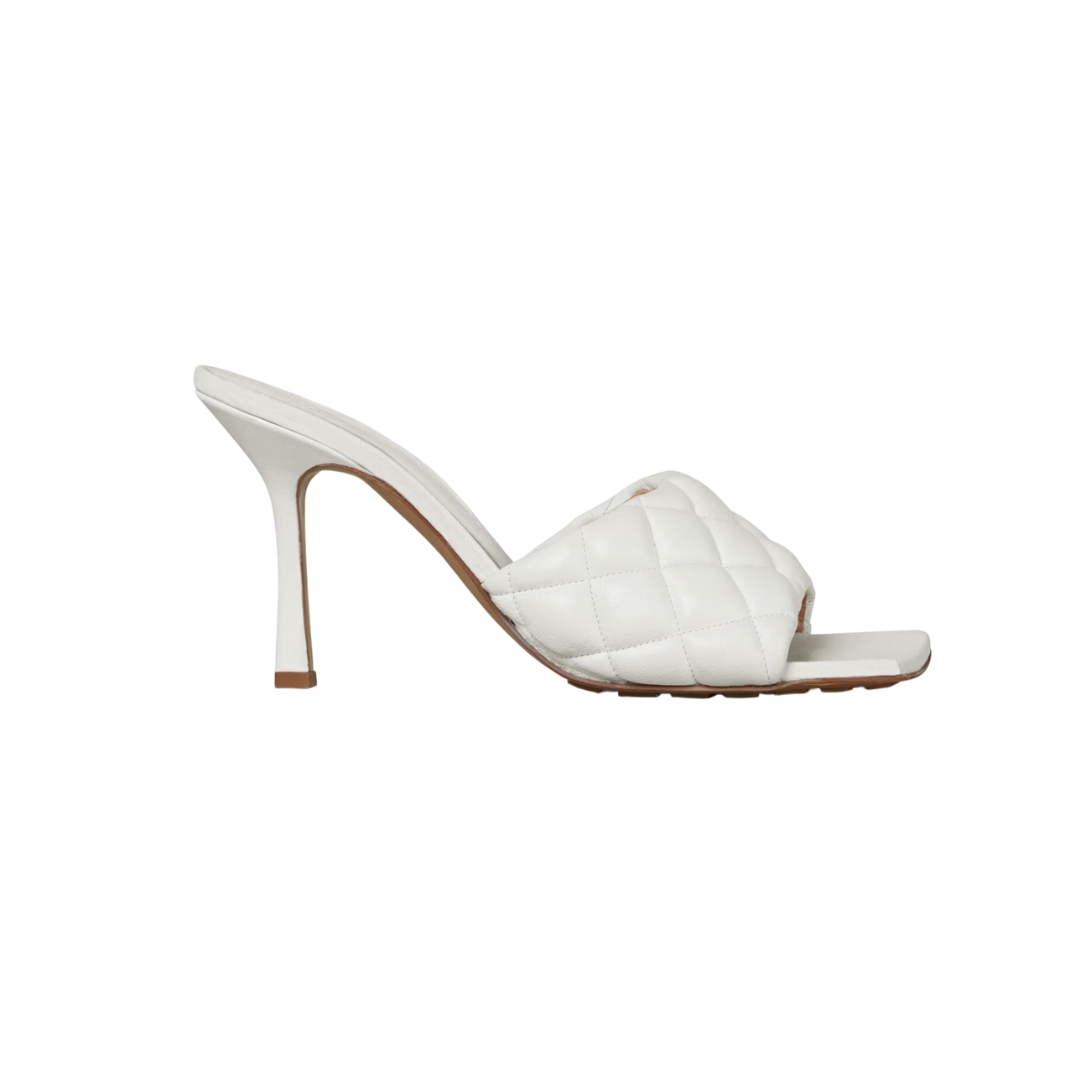 Mules Bottega Veneta imbottite in pelle bianco ottico con tacco 9 cm