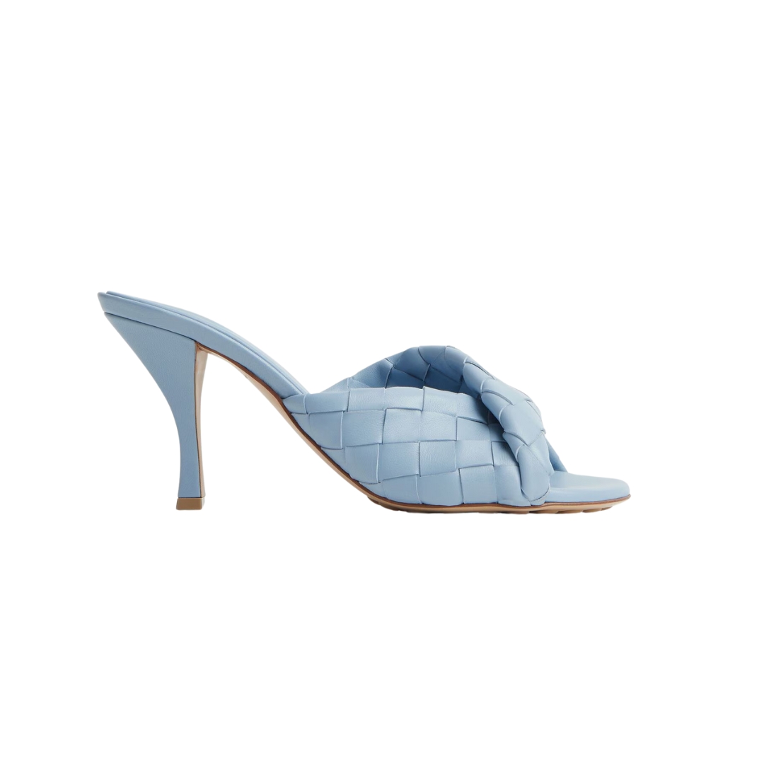 Mules Bottega Veneta in pelle azzurro ghiaccio con tacco 8 cm