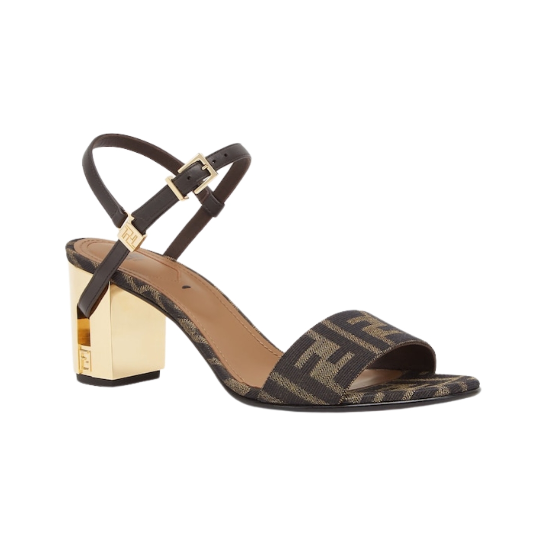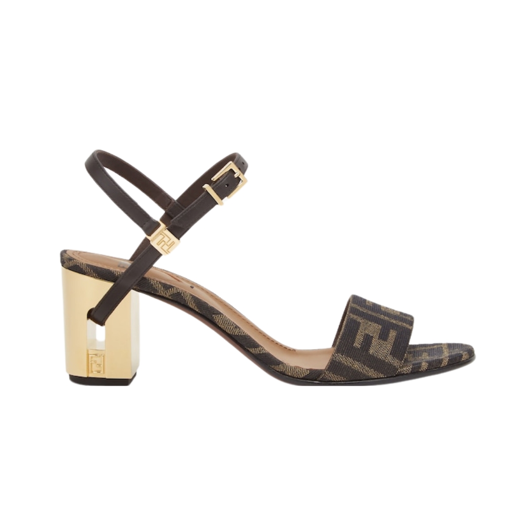 Sandali Fendi in canvas FF con tacco dorato 6,5 cm