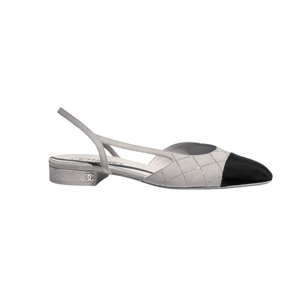 Décolleté slingback Fendi in tessuto bianco con punta dorata
