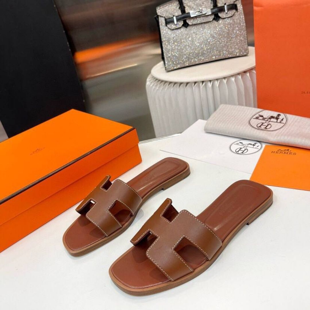Dettagli:● Materiale: Pelle di vitello● Colore: Marrone● Chiusura: Aperta● Logo: H traforata sul collo del piede● Suola: In cuoio● Interno: