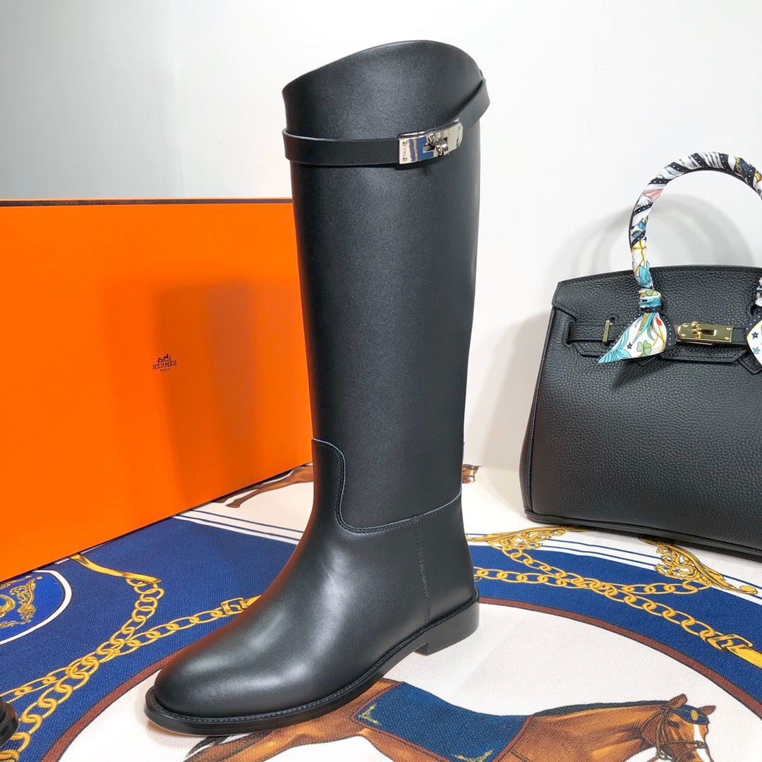 Stivali Hermès Jumping in pelle nera con tacco 2 cm
