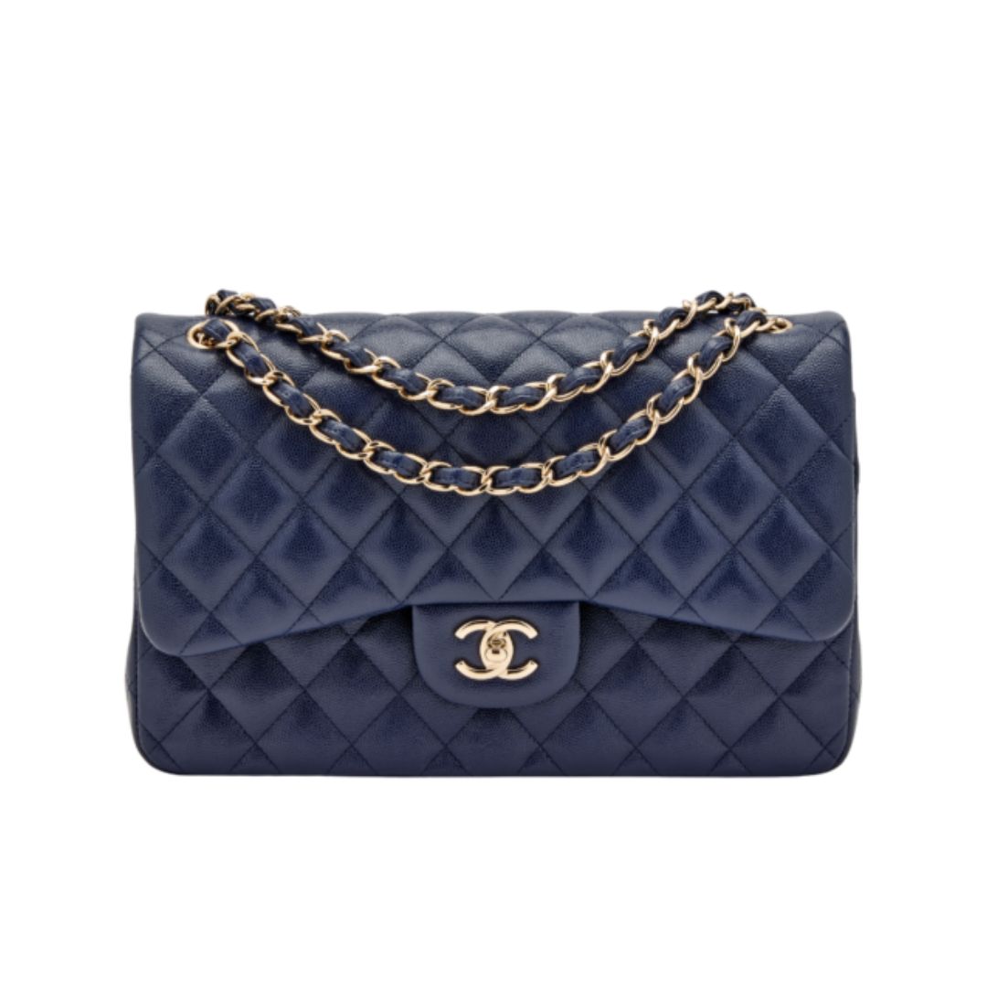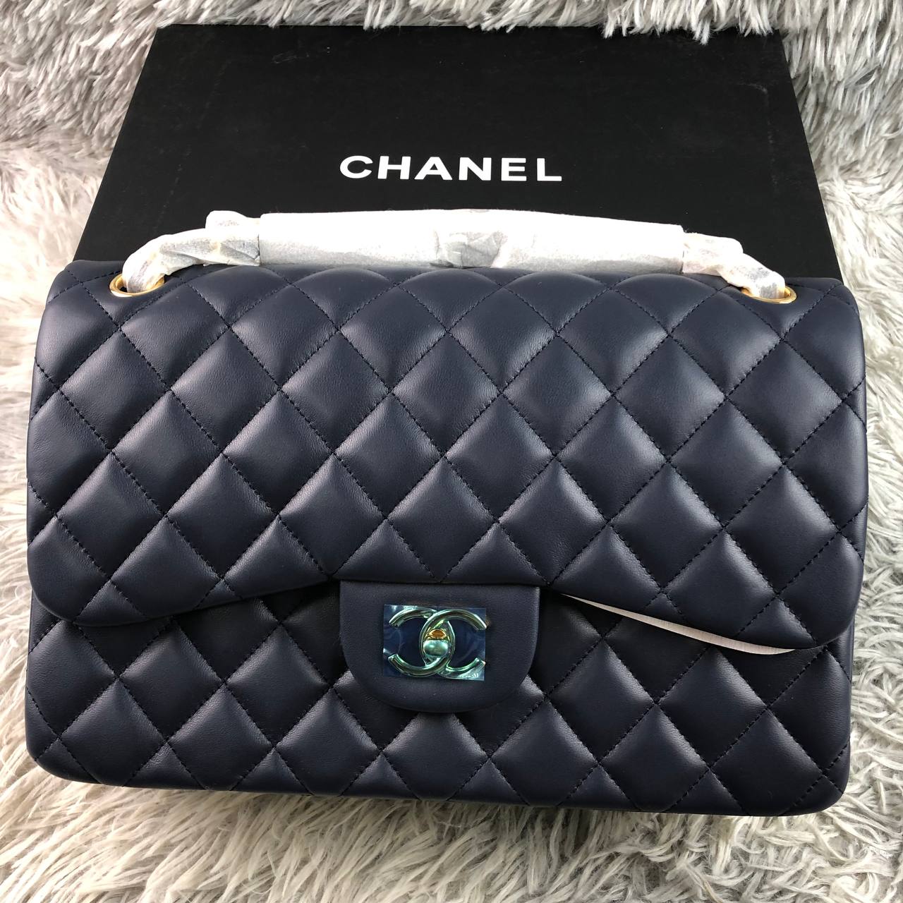 Borsa Chanel 11.12 Double Flap Blu navy Jumbo 30 cm