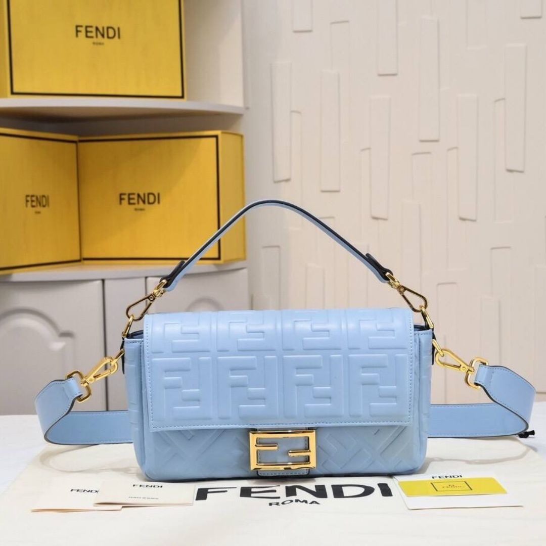 Borsa Fendi Baguette in pelle azzurra 27 cm