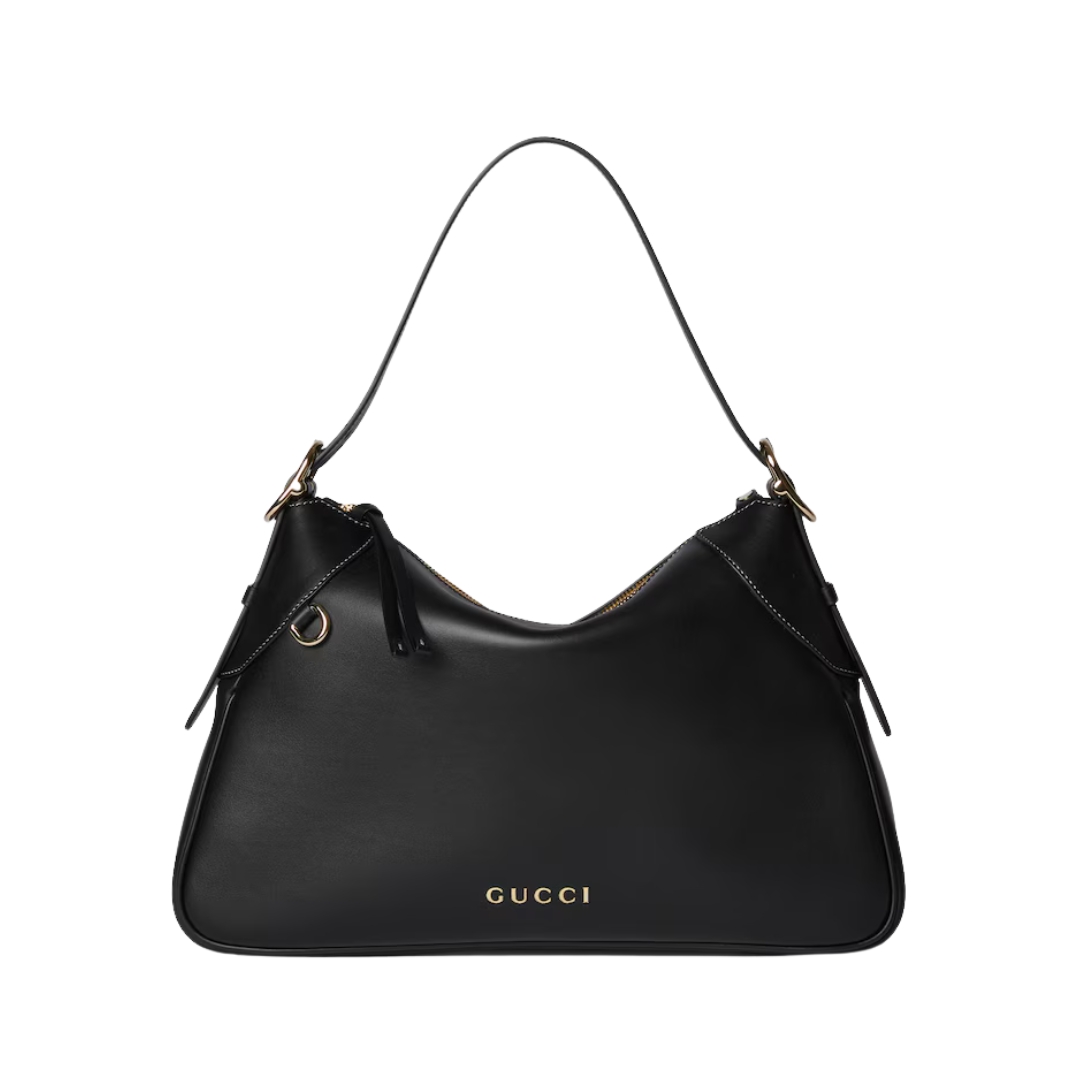 Borsa Gucci GG Emblem in pelle nera liscia 37 cm