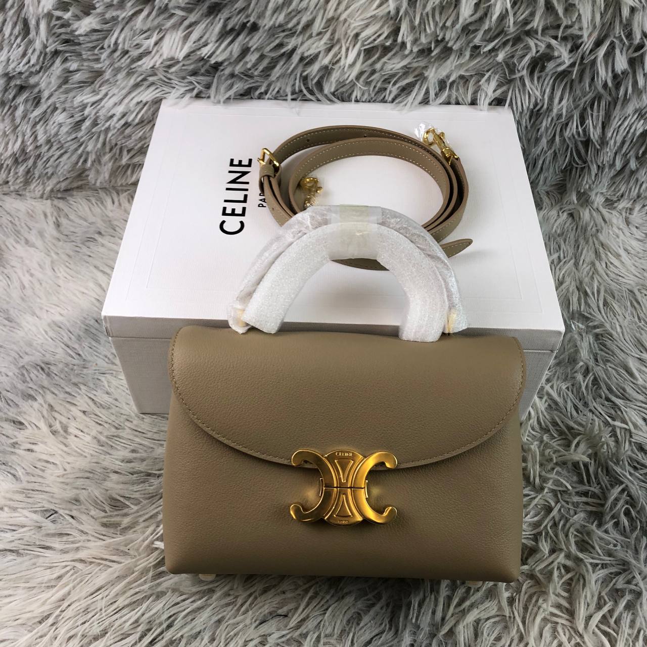 Borsa Celine Triomphe Teen Nino in pelle beige 20 cm