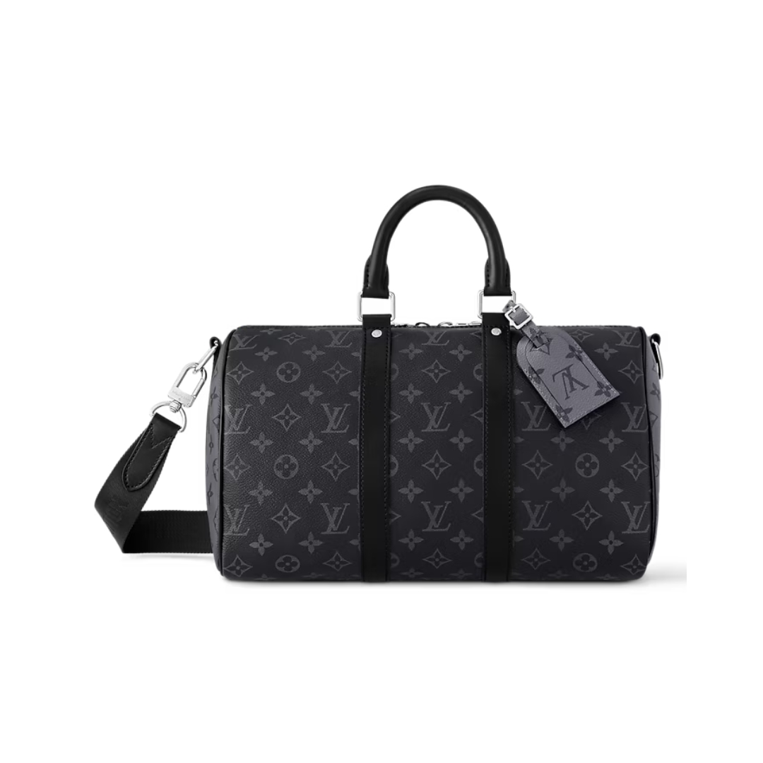 Borsa Louis Vuitton Keepall Bandoulière in tela Monogram Eclipse 34cm
