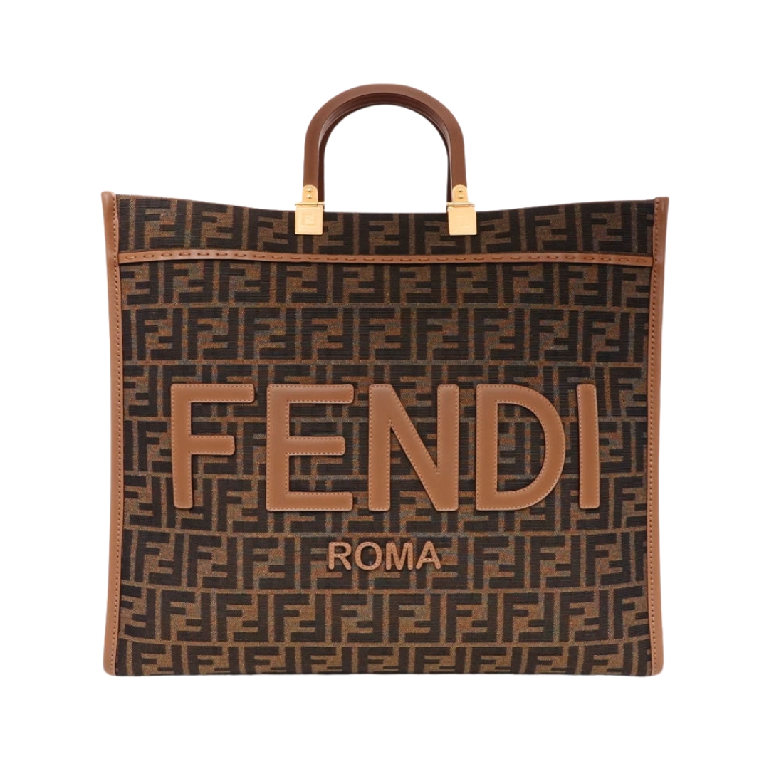 Borsa Fendi Sunshine shopper grande in tessuto FF marrone 35 cm
