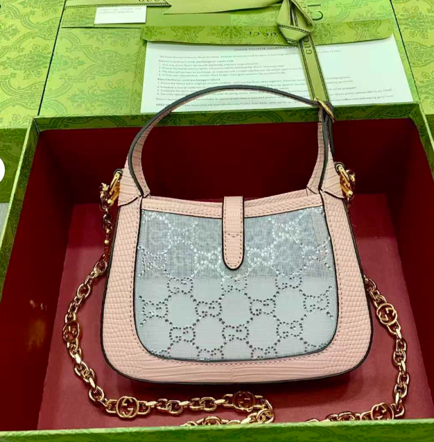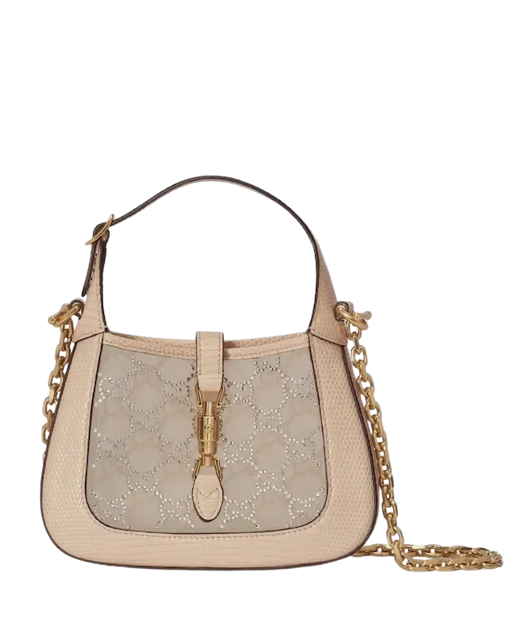 Borsa Gucci Jackie 1961 Mini Crystal in pelle rosa cipria 19 cm