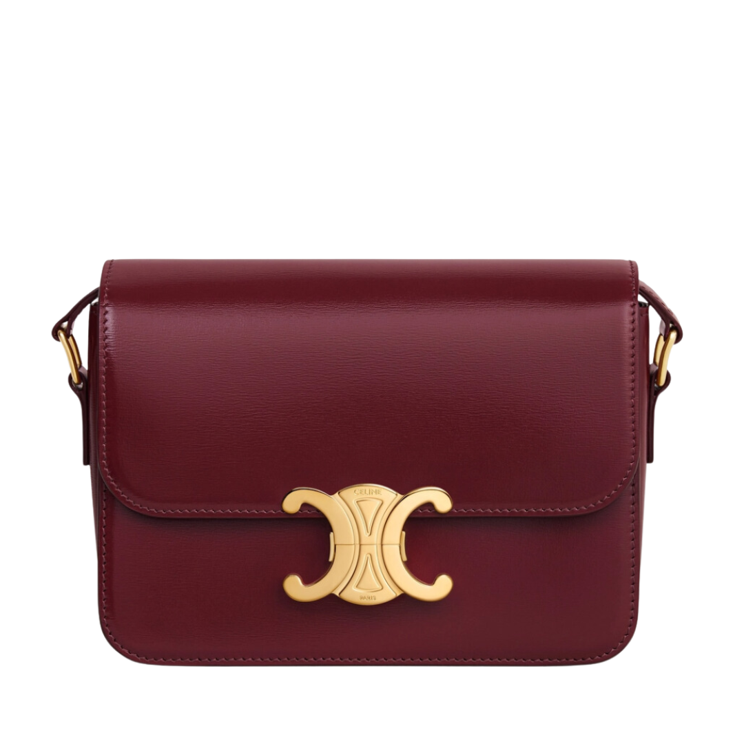 Borsa Celine Triomphe Teen in pelle bordeaux 18,5 cm