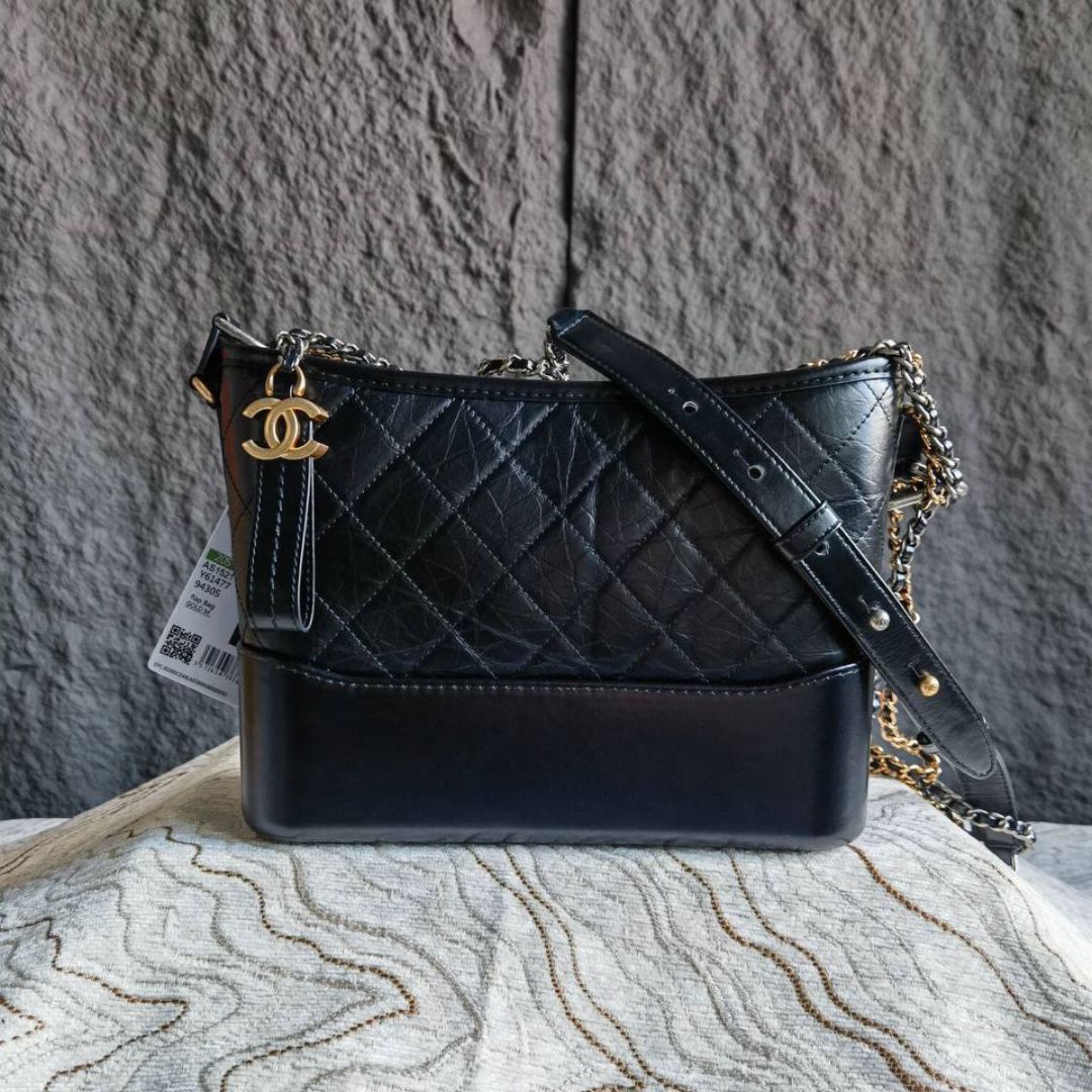 Borsa Chanel Gabrielle Hobo in pelle nera 28 cm