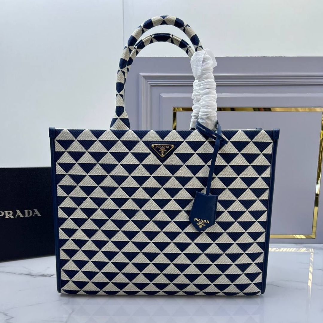Borsa Prada Symbole ricamata in tela blu 39 cm