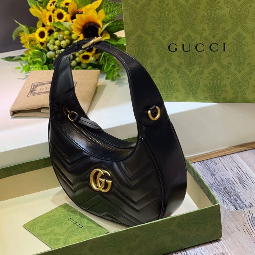 Borsa Gucci GG Marmont mezza luna mini in pelle nera 21 cm