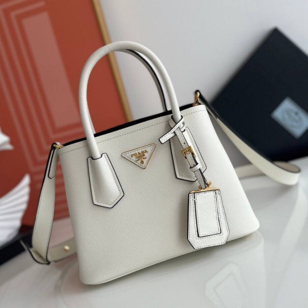 Borsa Prada Double in pelle Saffiano color crema 25 cm
