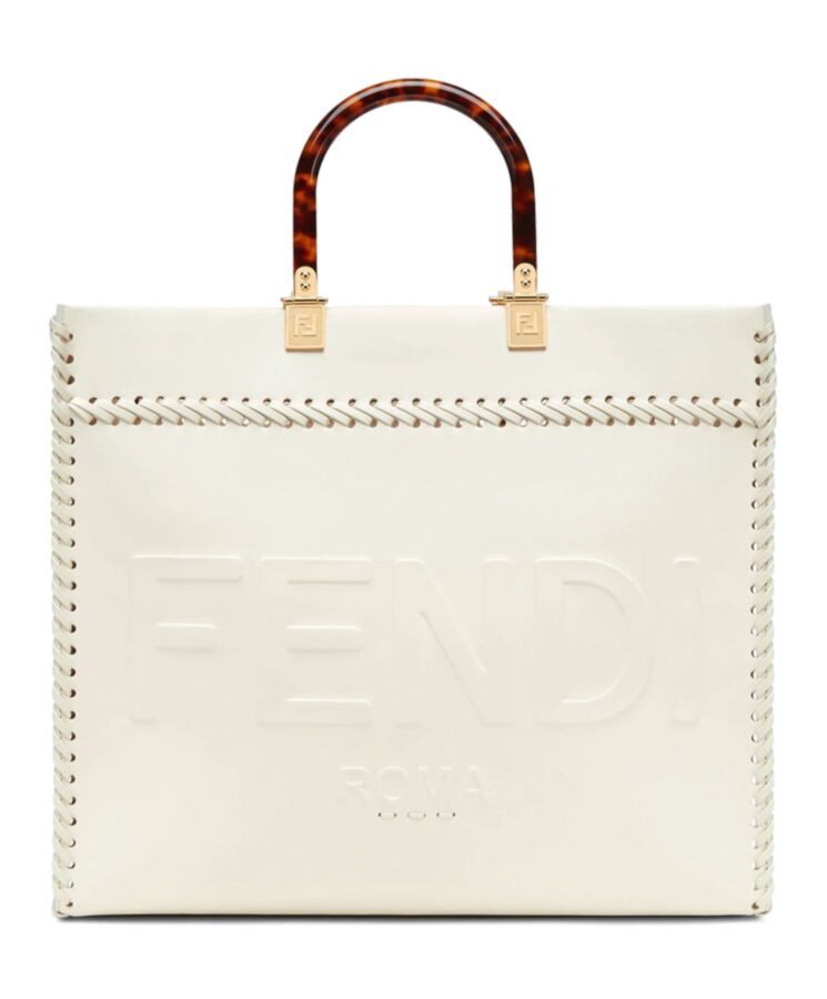 Borsa Fendi Sunshine Shopper in pelle color crema 41 cm