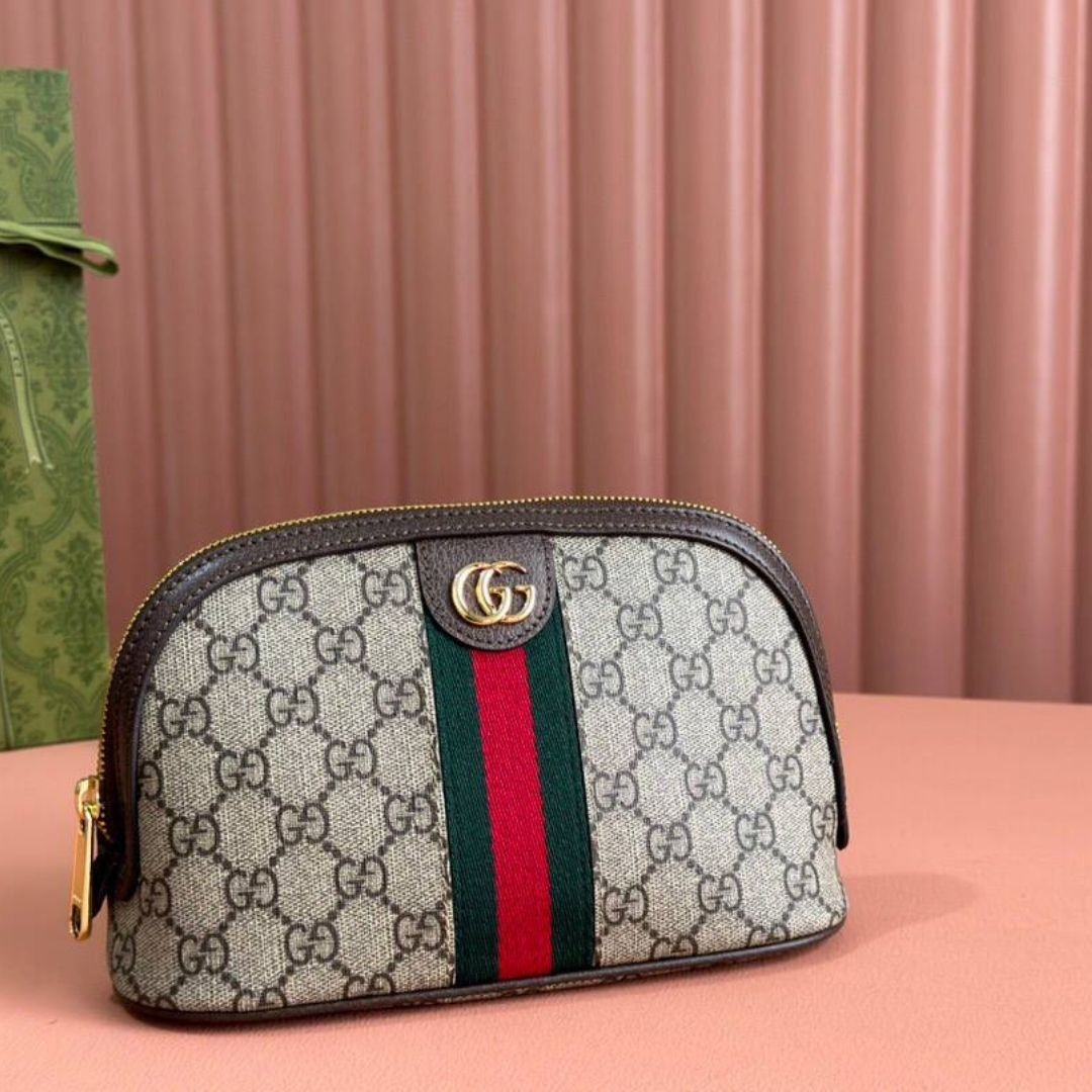 Dimensioni:● Larghezza: 23 cm● Altezza: 16 cm● Profondità: 7 cm Dettagli:● Materiale: Tela GG Supreme e pelle● Colore: Beige e