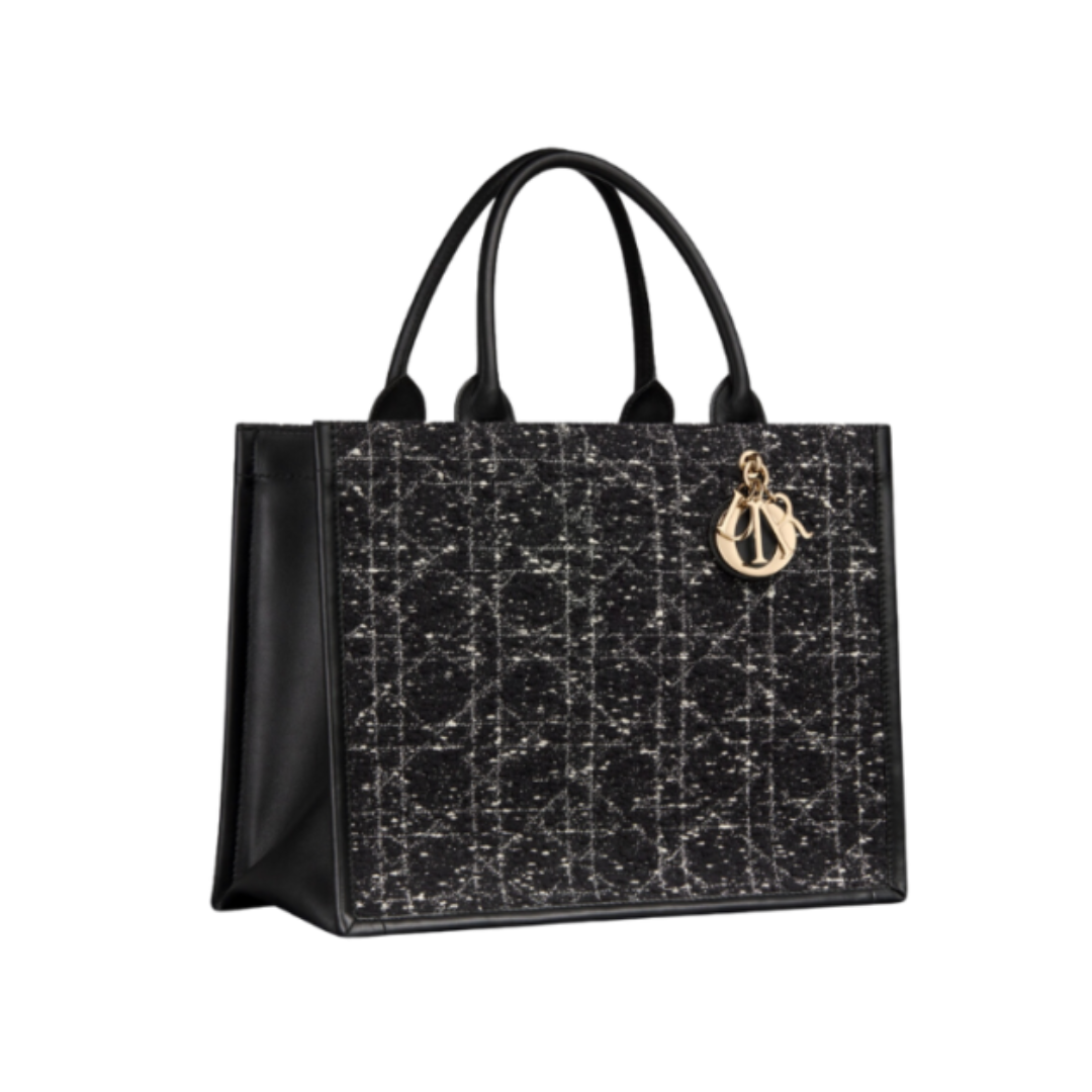 Borsa Dior Book Tote in ricamo Dior Oblique nero e grigio 36 cm