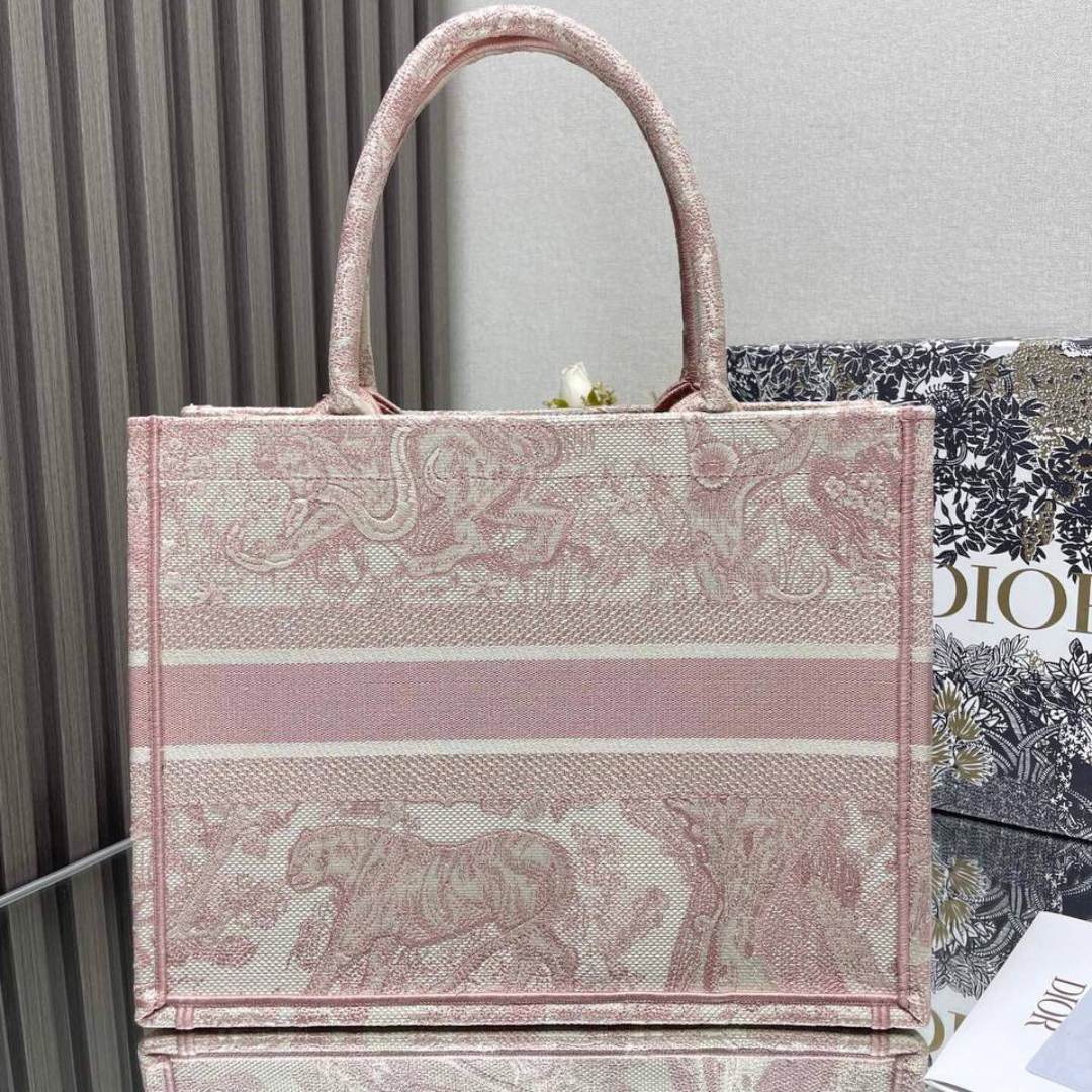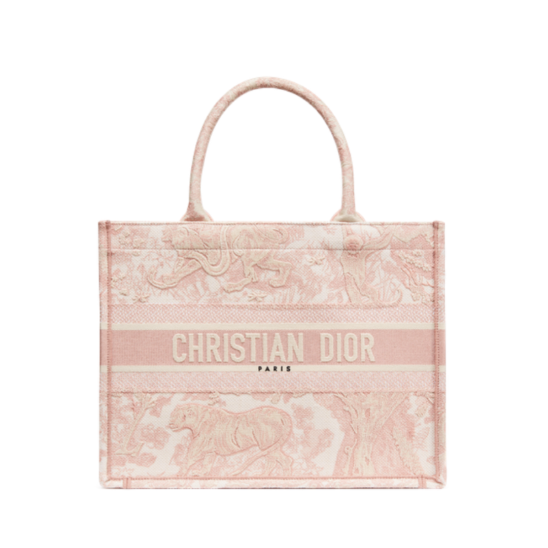 Borsa Dior Book Tote media con ricamo Toile de Jouy rosa cipria 36 cm