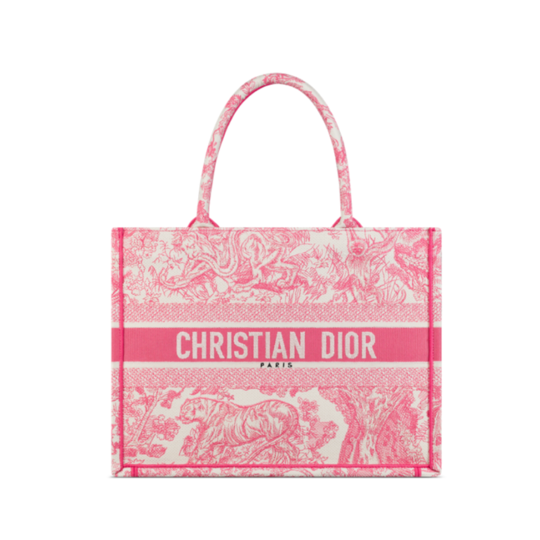 Borsa Dior Book Tote media con ricamo Toile de Jouy fuchsia 36 cm