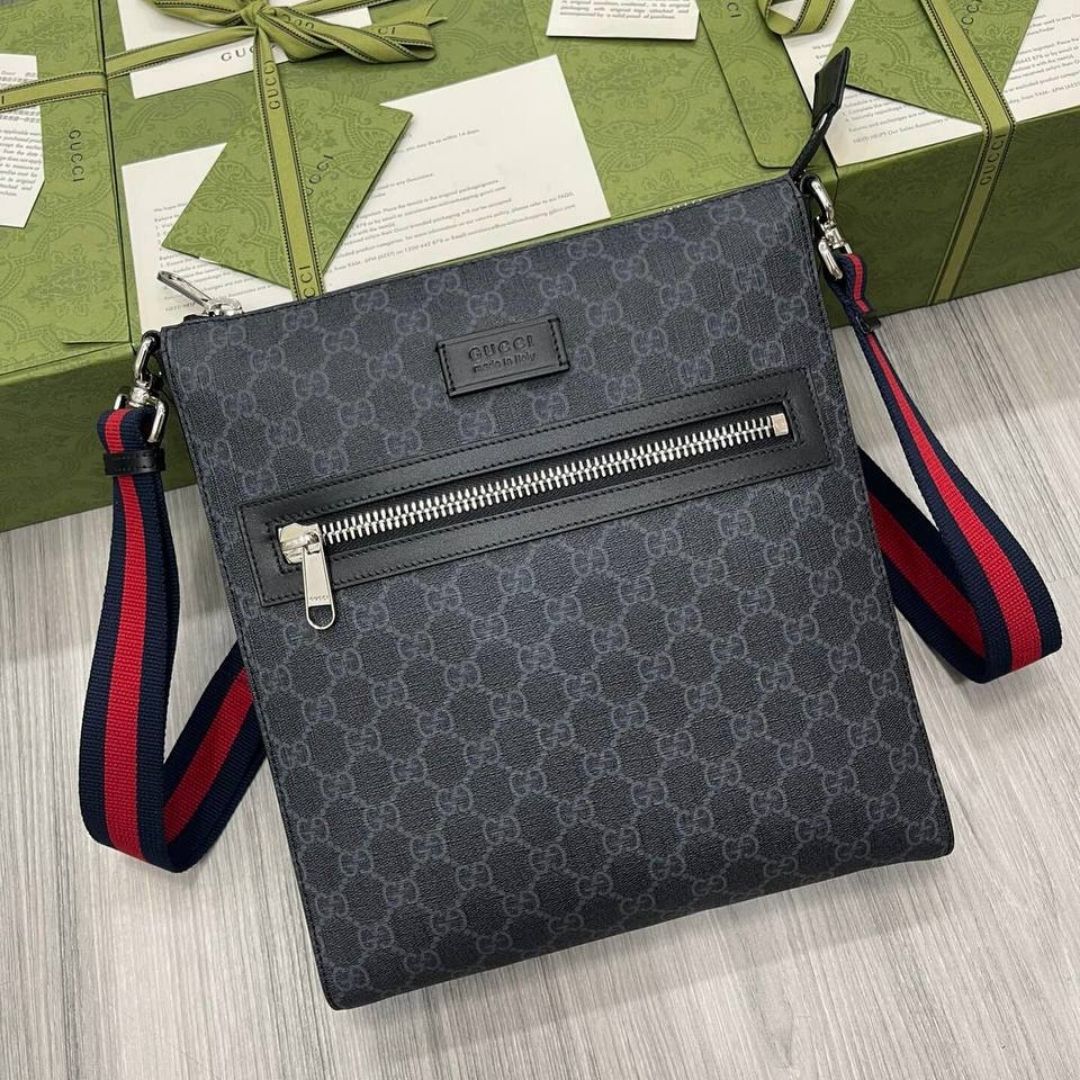 Dimensioni:● Larghezza: 25 cm● Altezza: 17 cm● Profondità: 7 cm Dettagli:● Materiale: Tela GG Supreme e pelle● Colore: Beige e