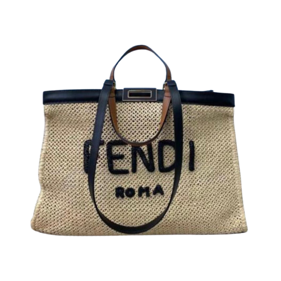 Borsa Fendi Peekaboo X-Tote media in rafia beige 41 cm