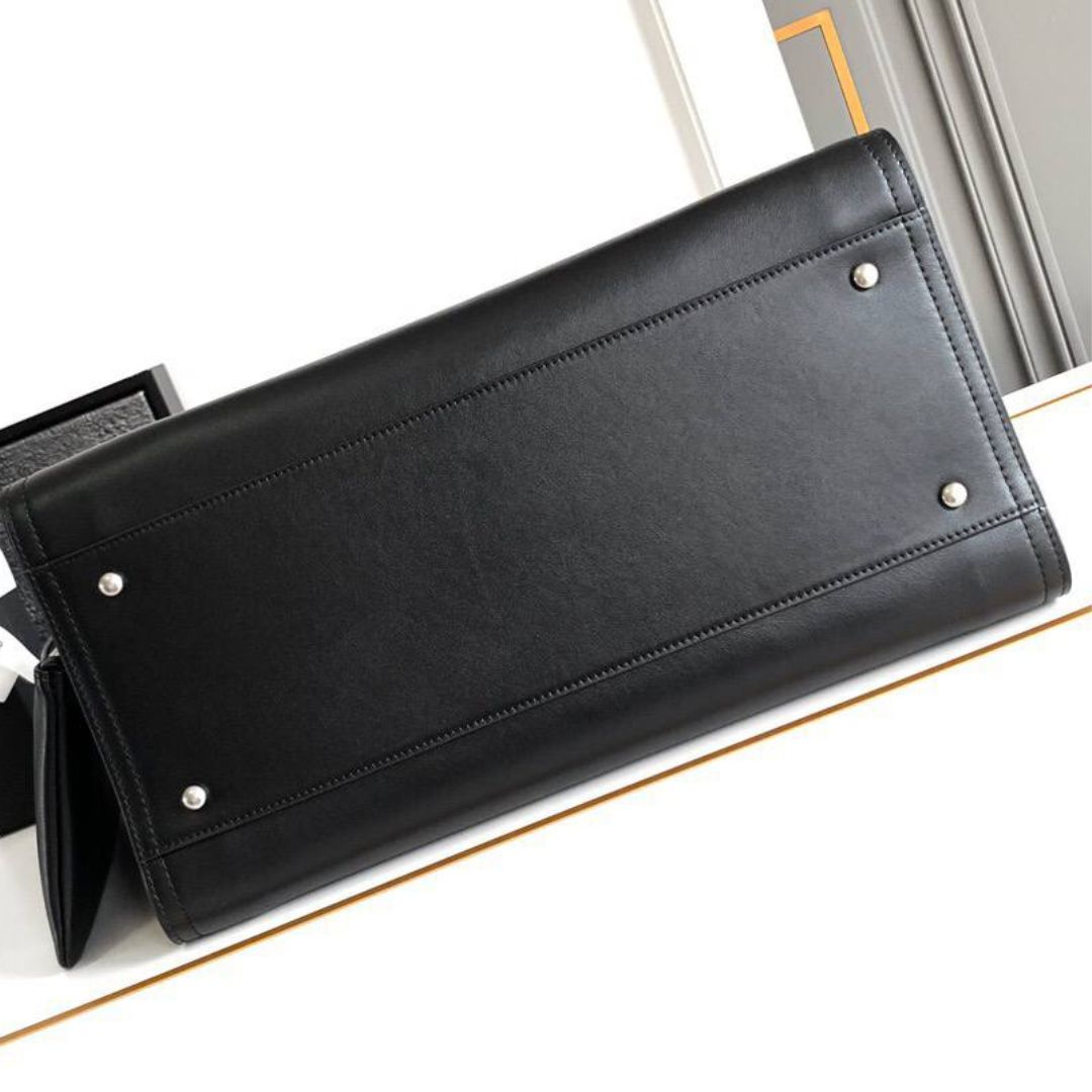Dimensioni:● Larghezza: 50 cm● Altezza: 32 cm● Profondità: 16 cm Dettagli:● Materiale: Pelle liscia di vitello● Colore: Marrone scuro● Chiusura: