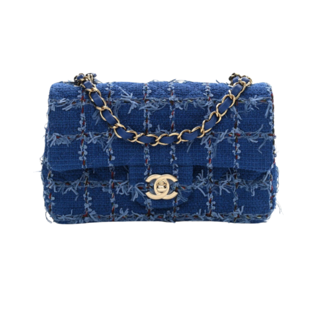 Borsa Chanel Classic Flap Mini blu con finiture oro 20 cm
