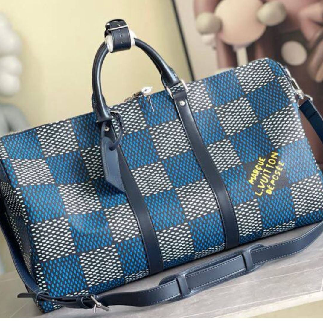 Borsa Louis Vuitton Keepall Bandoulière blu 50 cm