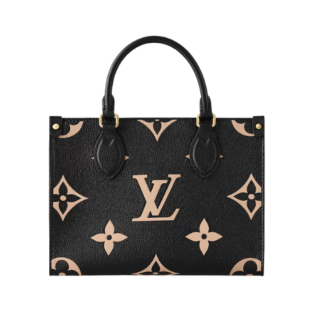 Borsa Louis Vuitton OnTheGo PM nera e beige 25 cm