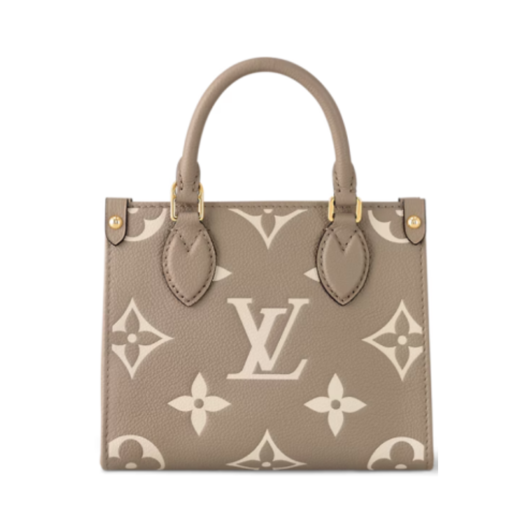 Borsa Louis Vuitton OnTheGo BB grigio tortora e crema 18 cm