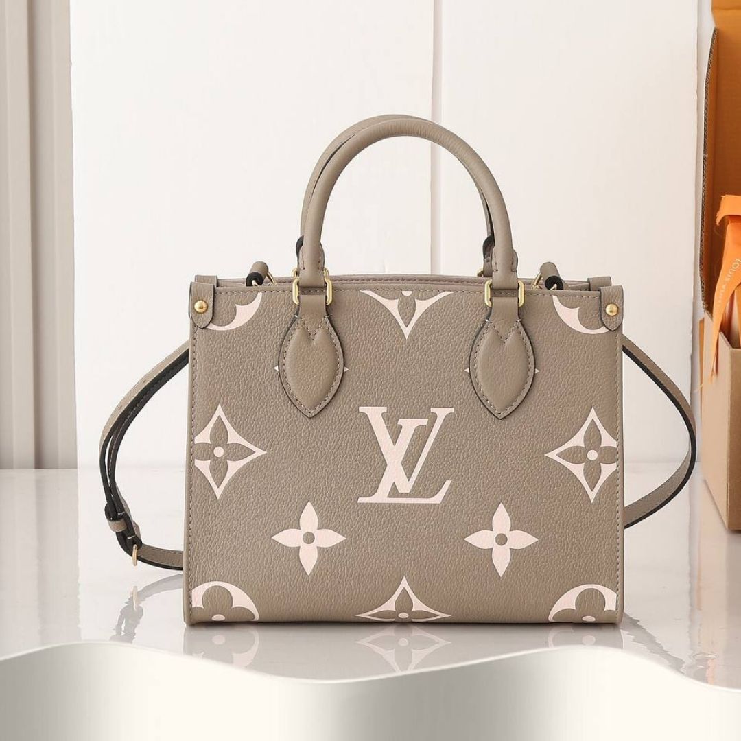 Borsa Louis Vuitton OnTheGo PM grigio tortora e crema 25 cm