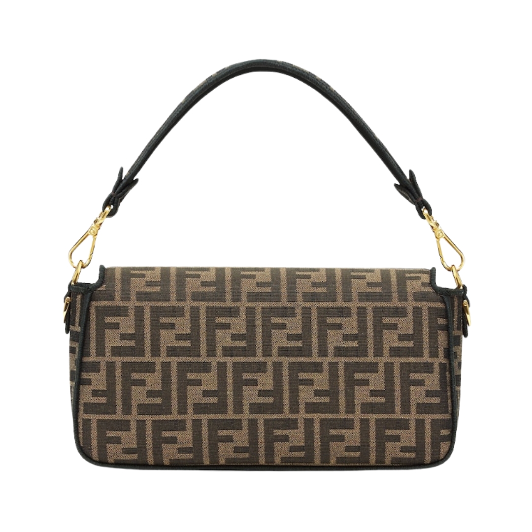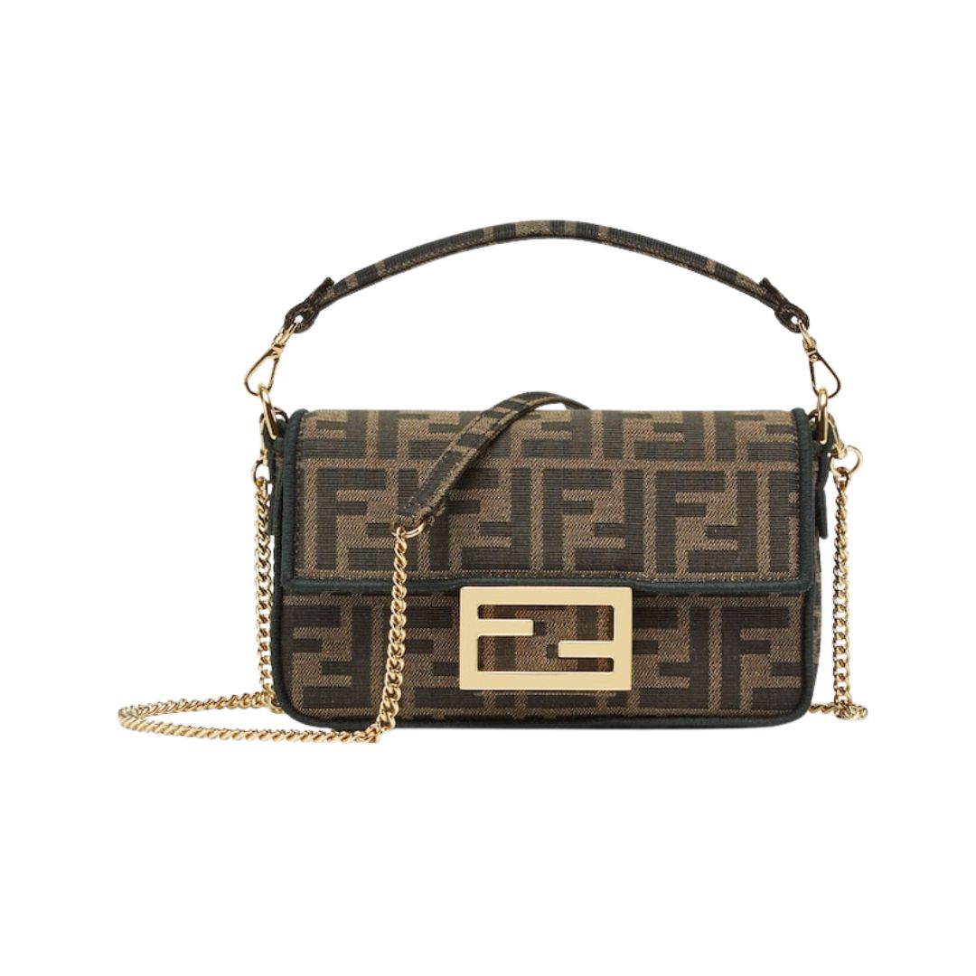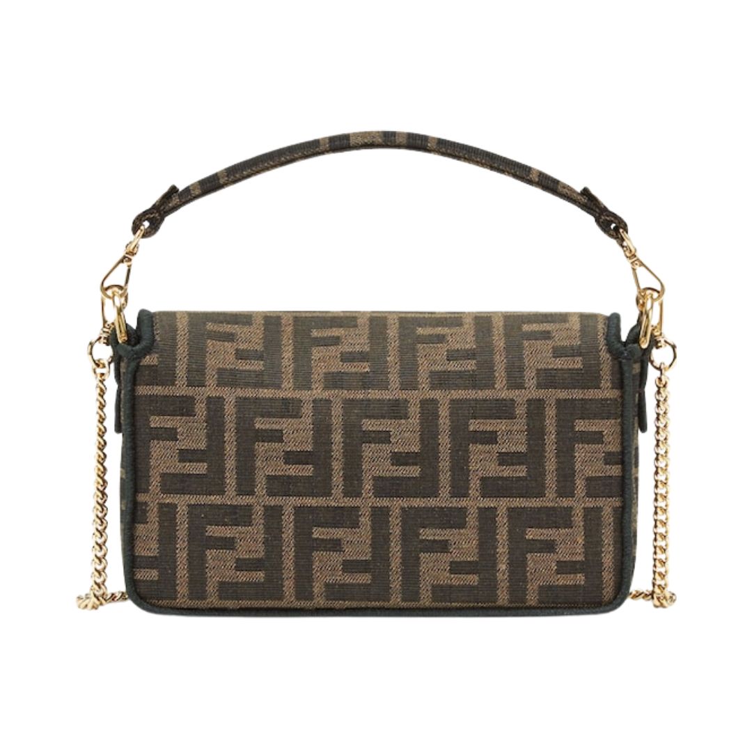 Borsa Fendi Baguette Chain Mini in tessuto jacquard FF marrone 13 cm