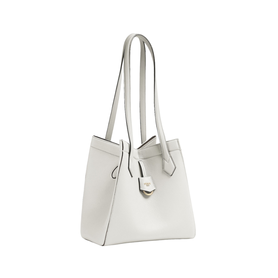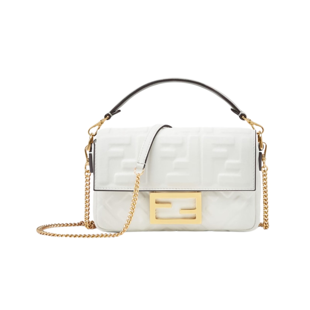 Borsa Fendi Baguette Chain Mini in pelle nappa bianca con motivo FF 13 cm