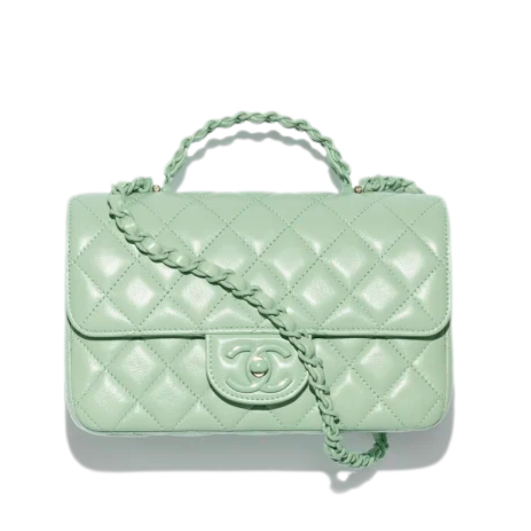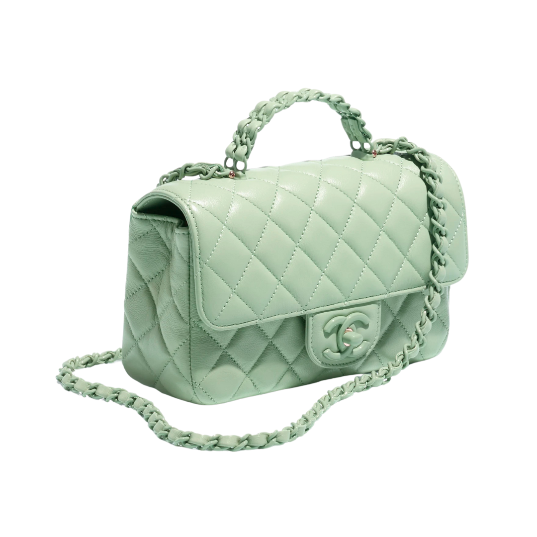 Borsa Chloé Mini Flap verde con manico superiore