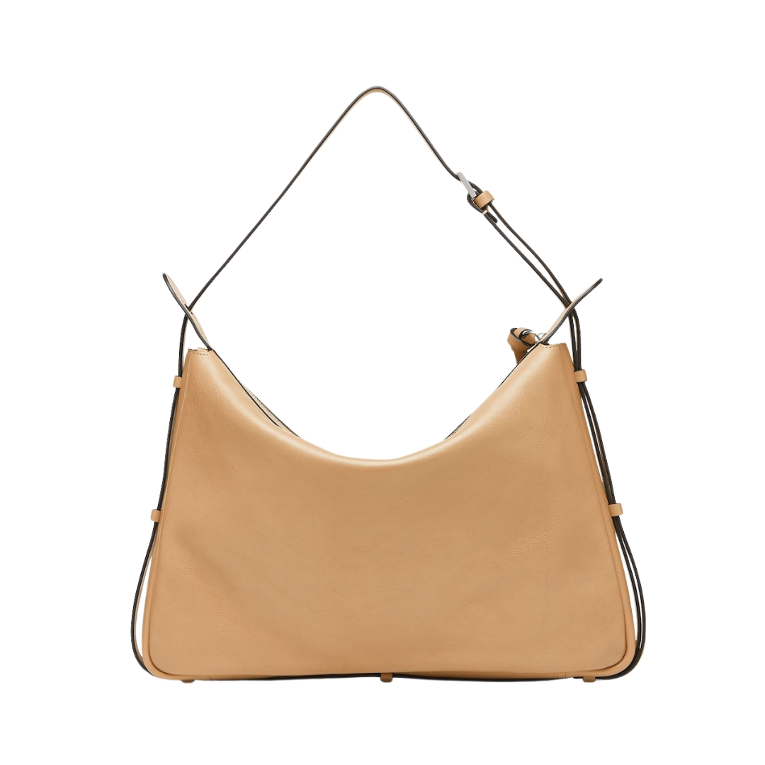 Dimensioni:● Larghezza: 27 cm● Altezza: 25 cm● Profondità: 13 cm Dettagli:● Materiale: Pelle liscia● Colore: Taupe● Chiusura: Con coulisse● Logo: