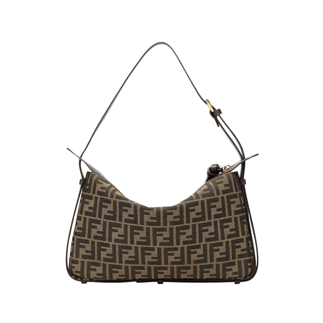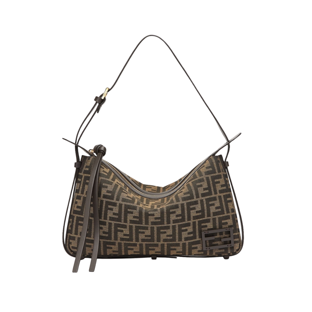 Dimensioni:● Larghezza: 19 cm● Altezza: 11 cm● Profondità: 4 cm Dettagli:● Materiale: Tessuto jacquard FF e pelle● Colore: Marrone e