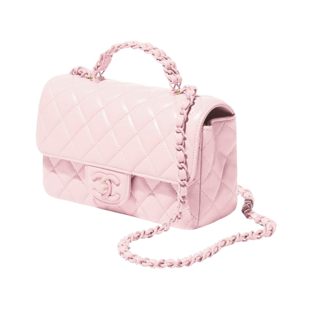 Borsa Chloé Mini Flap rosa con manico superiore
