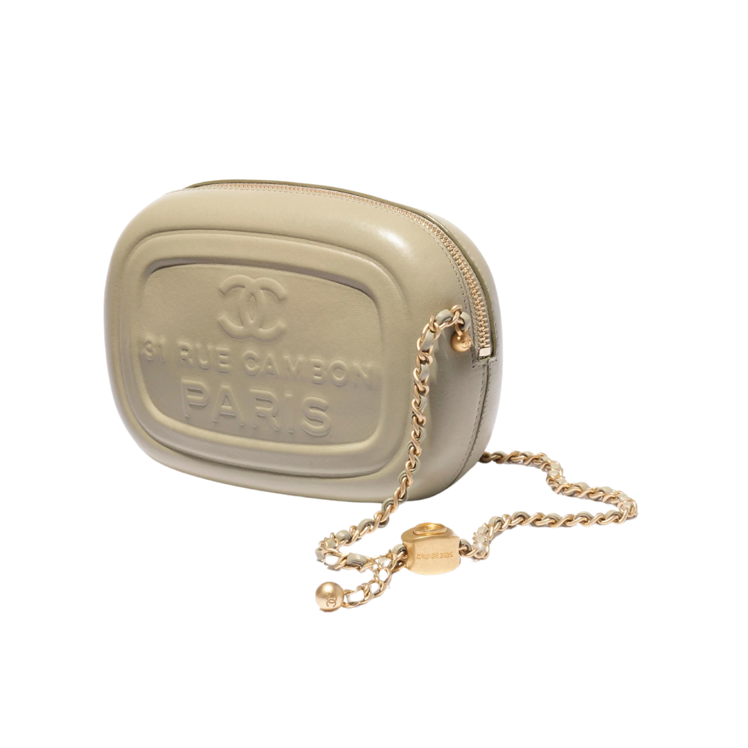 Dettagli:● Materiale: Pelle liscia● Colore: Beige sabbia● Chiusura: Zip superiore● Logo: Ciondolo frontale C● Tracolla: Regolabile in pelle● Interno: Scomparto
