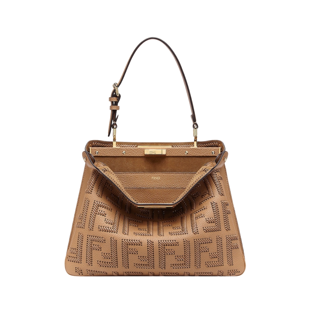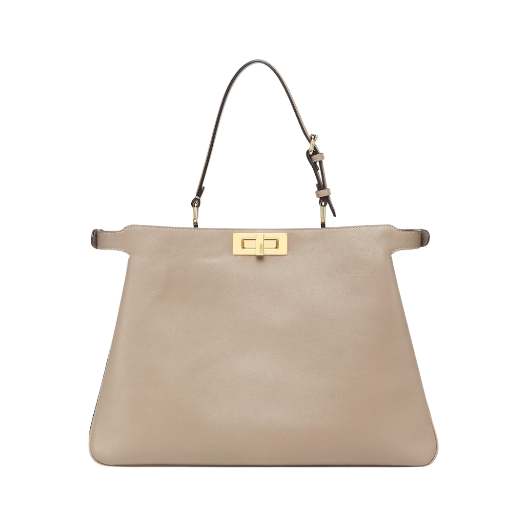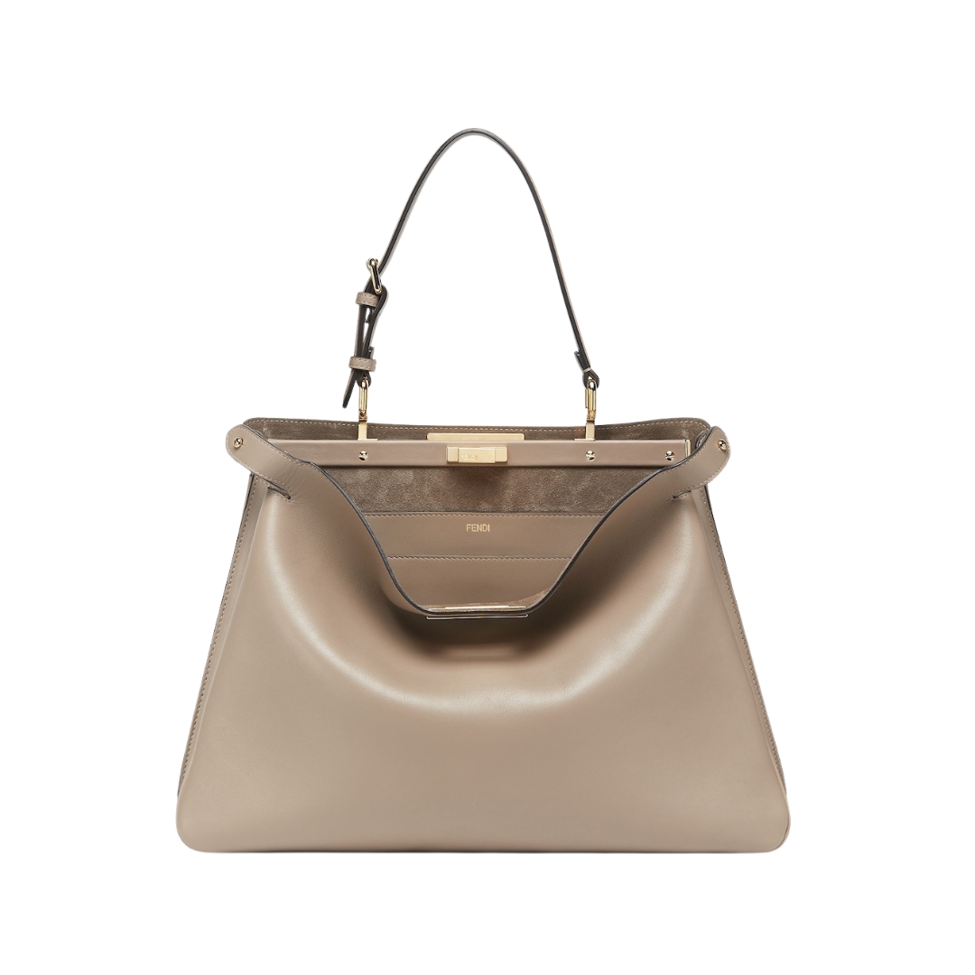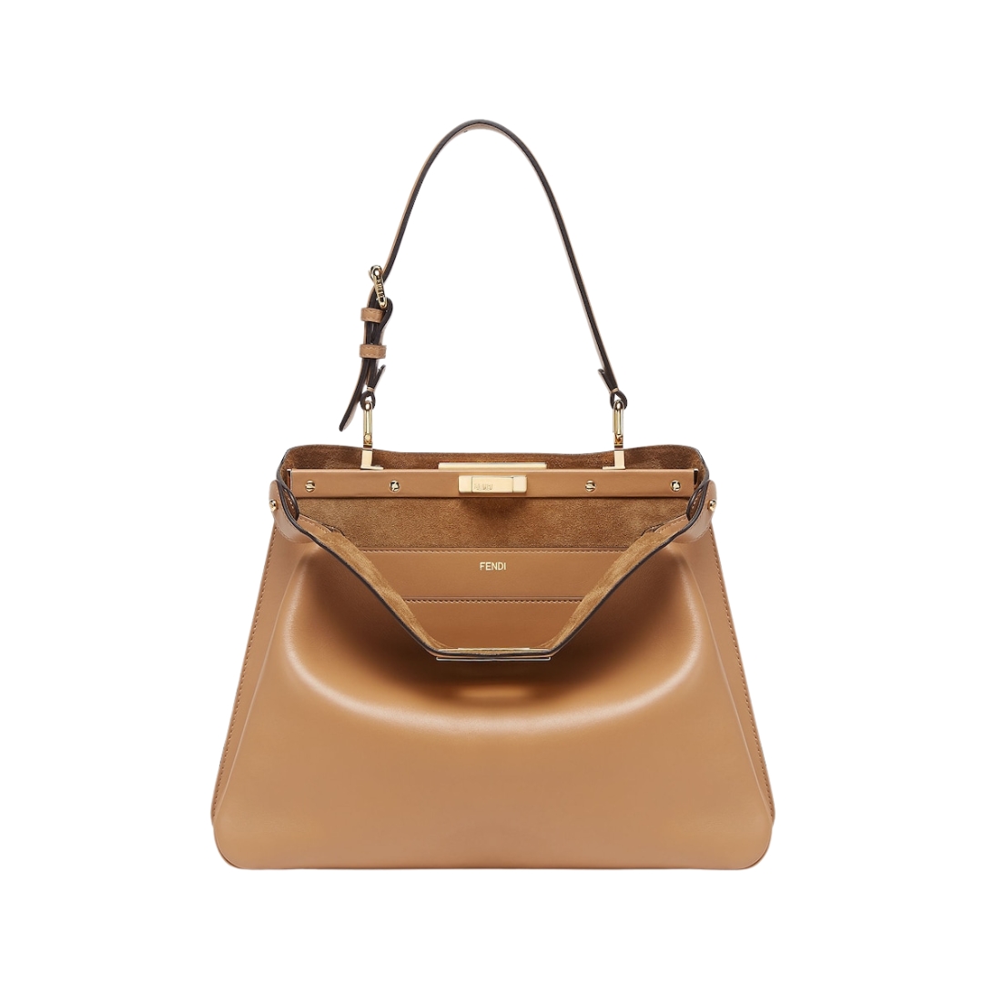 Borsa Fendi Peekaboo in pelle color latte macchiato 25.5 cm